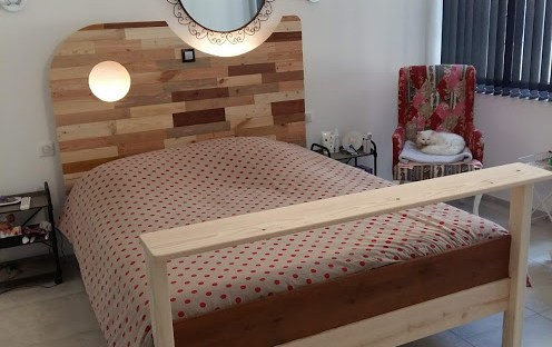 Rien de plus simple… du bois de palette que vous fixez sur une planche de médium, celle-ci ayant été, au préalable, découpée à la forme choisie.