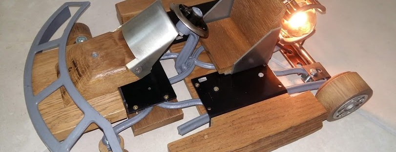 Fabriqué à partir de pièces en fonte de machine à coudre, de bois et métal de récupération, ce véhicule aura fière allure dans votre intérieur.
