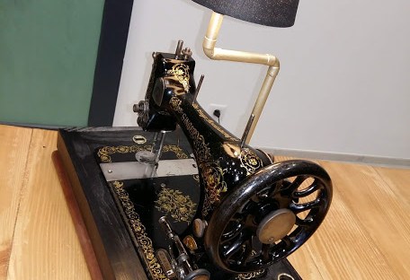 Délicatement posée sur une partie de son plateau d’origine, teinté bicolore, « la belle couturière » offre un profil des plus flatteurs avec ses couleurs or et noir.