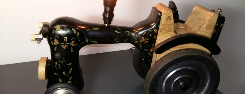 Pour lui rendre hommage, nous avons créé cette lampe tracteur à partir d’une ancienne machine à coudre « La Meuse » et de vieilles roues de jouets.