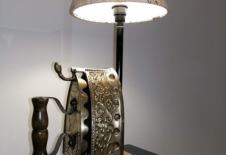 Cette fois ci, nous avons entrepris de transformer un ancien fer à repasser à charbon de bois en une lampe de bureau ou de chevet.