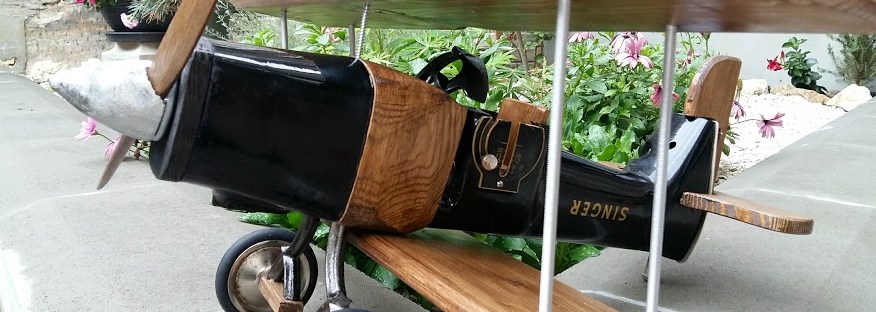 Créé à partir d’une ancienne machine à coudre SINGER et compléter de pièces de bois vernis et divers accessoires chinés par ci par là, « L’oiseau de fonte » sera une pièce phare de votre intérieur .