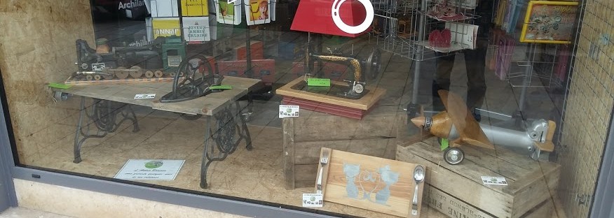 Chez JM Chausseur, le plus grand « chantier » de l’Atelier Barisien nous a été confié par Jean Marie. L’objectif est le renouvellement dans un style plus actuel du mobilier de sa boutique et, pour cela, nous lui avons créé des pièces uniques en bois de palette et pieds de machine à coudre ainsi qu’ un automate. Toutes les pièces sont uniques, originales et éco- responsables.