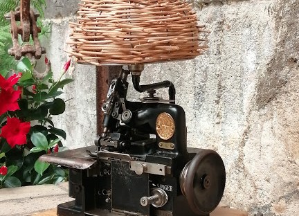 C’est une pépite que nous vous avons dénichée dans un vide-maison local…une ancienne surjeteuse Singer, pièce rare à chiner.