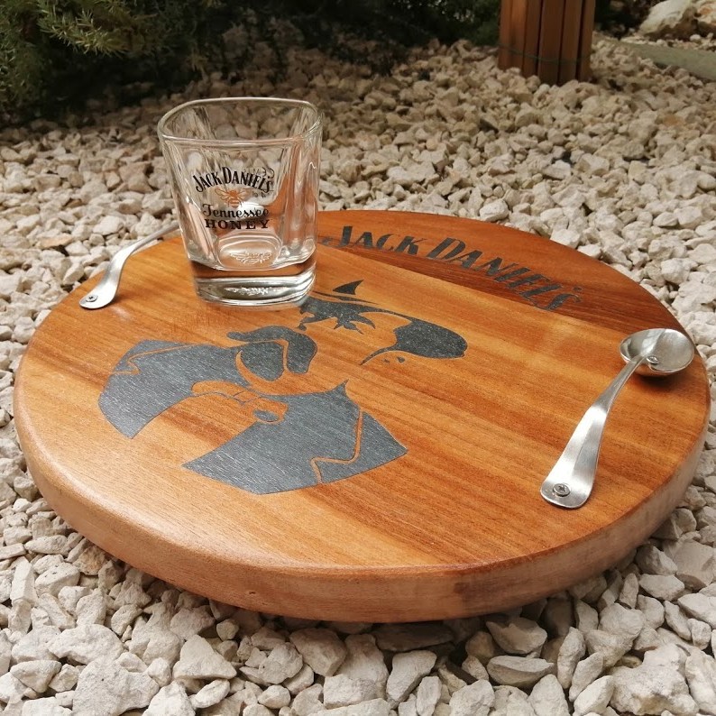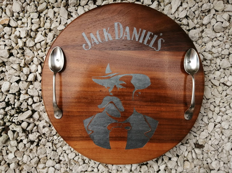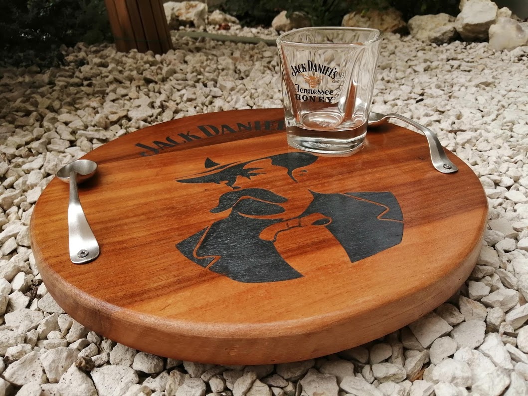 Pour le décor, à l’heure de l’apéro, nous avons opté pour une marque de Whisky et pour les poignées, de belles cuillères en argent.