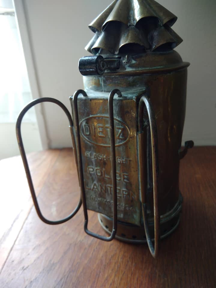 C’est chez notre brocanteur favoris( La Salamandre à Ménil sur Saulx) que nous avons déniché un petite merveille, une lanterne de policier New Yorkais datant des années 1890-1900. Cette lanterne en cuivre fonctionnait au pétrole (ou à l’huile de baleine) et est de marque DIETZ.