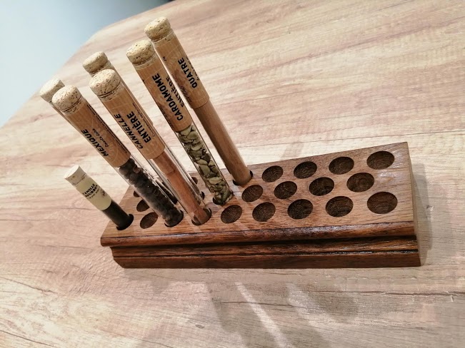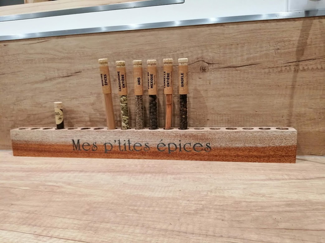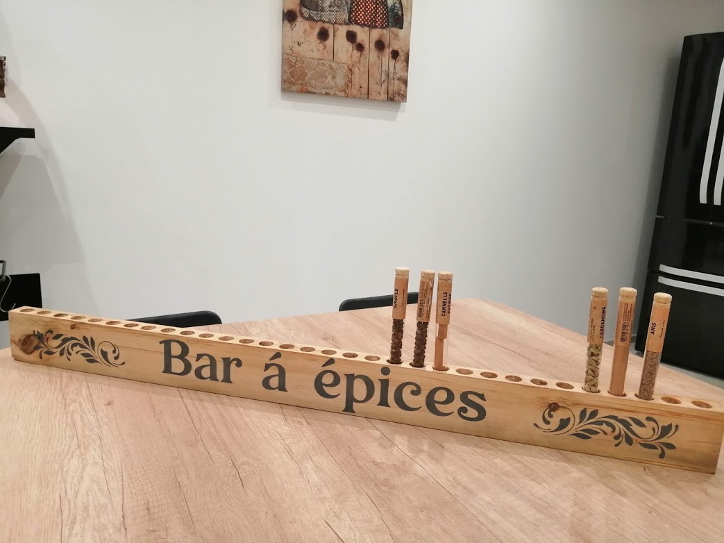 A l’Atelier Barisien, nous avons la solution: la barre à épices. Réalisée à la taille voulue, avec le texte qui vous correspond, aux couleurs de votre cuisine, en barre simple ou double….pour 15, 20 ou même 32 tubes( et oui, 1 mètre d’épices), tout est possible et puis, si vous manquez d’idées, quelques modèles sont en vente chez la Fée-tout.