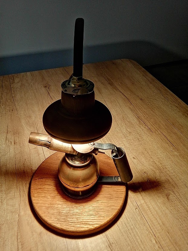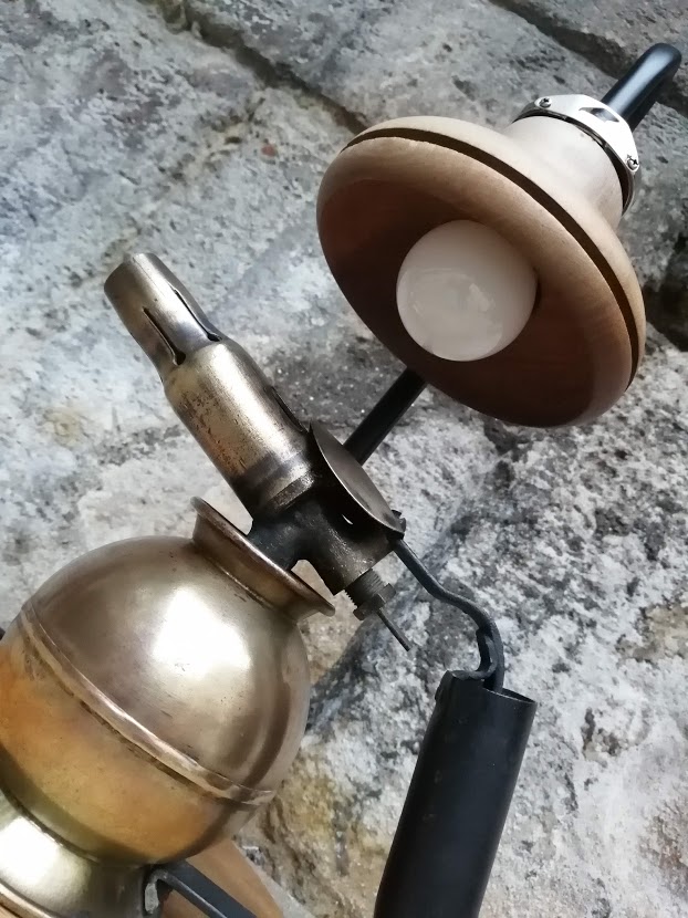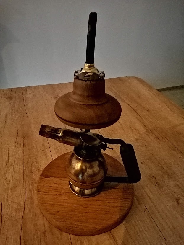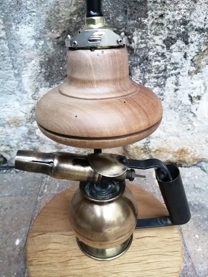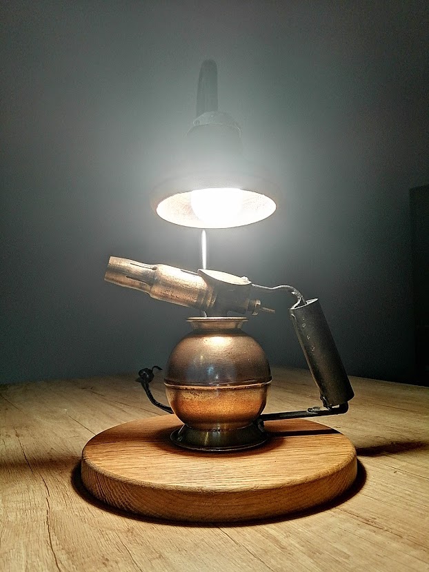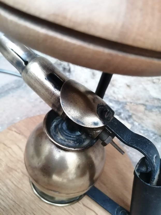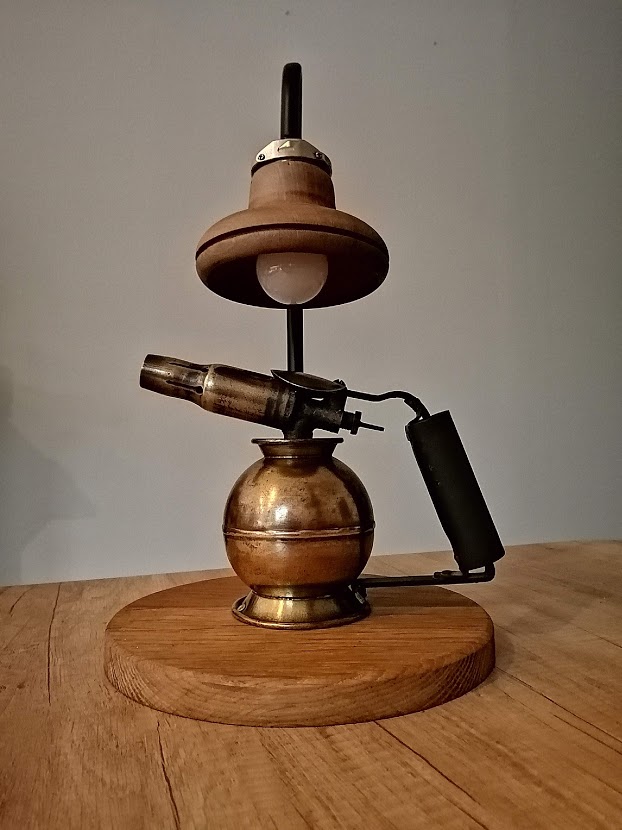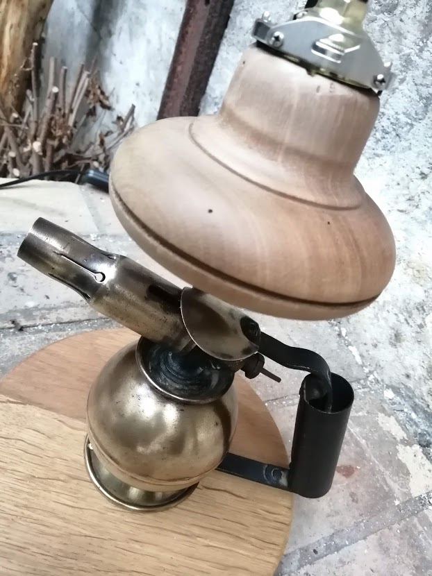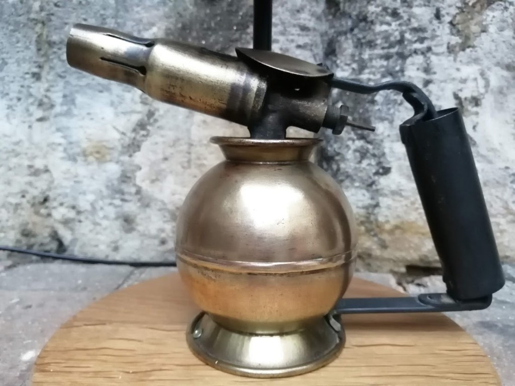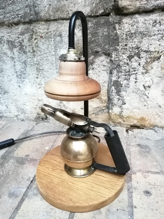 Nous avons déniché une ancienne lampe à souder de marque SURMELIN chez notre brocanteur préféré. Sa forme ronde est peu commune et nous avons entrepris de lui donner une 2ème vie.