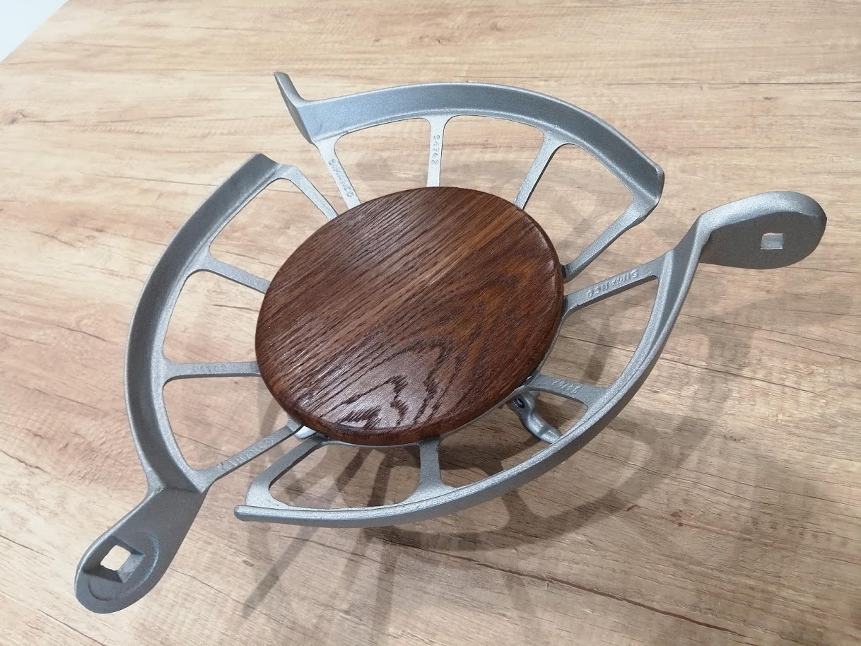 Nous avons déjà créé quelques corbeilles à fruits avec des protège-courroie arrondis de machine à coudre ancienne. Mais, cette fois-ci, c’est avec 3 protège-courroie d’allure très industrielle que nous avons réalisé cette corbeille.