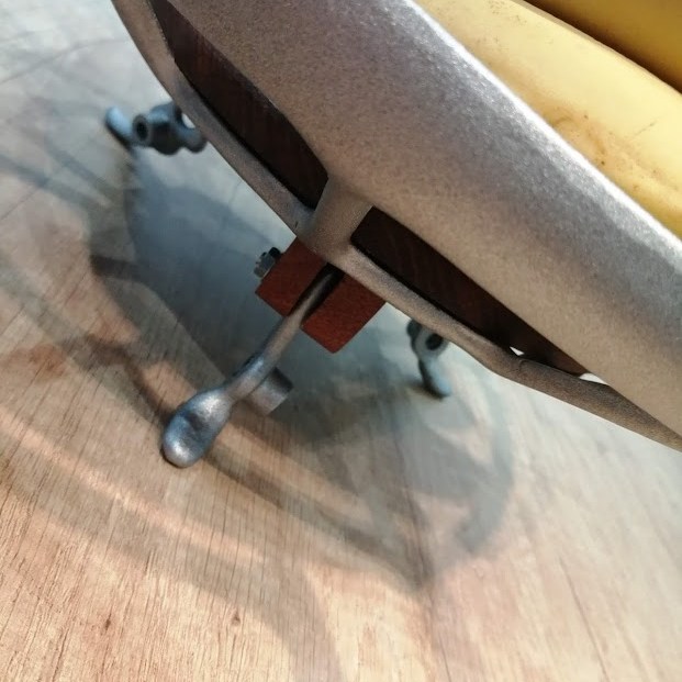 Pour styler davantage cette création, ce sont 3 guides de courroie qui ont été positionnés sous le plateau pour faire des pieds très originaux.