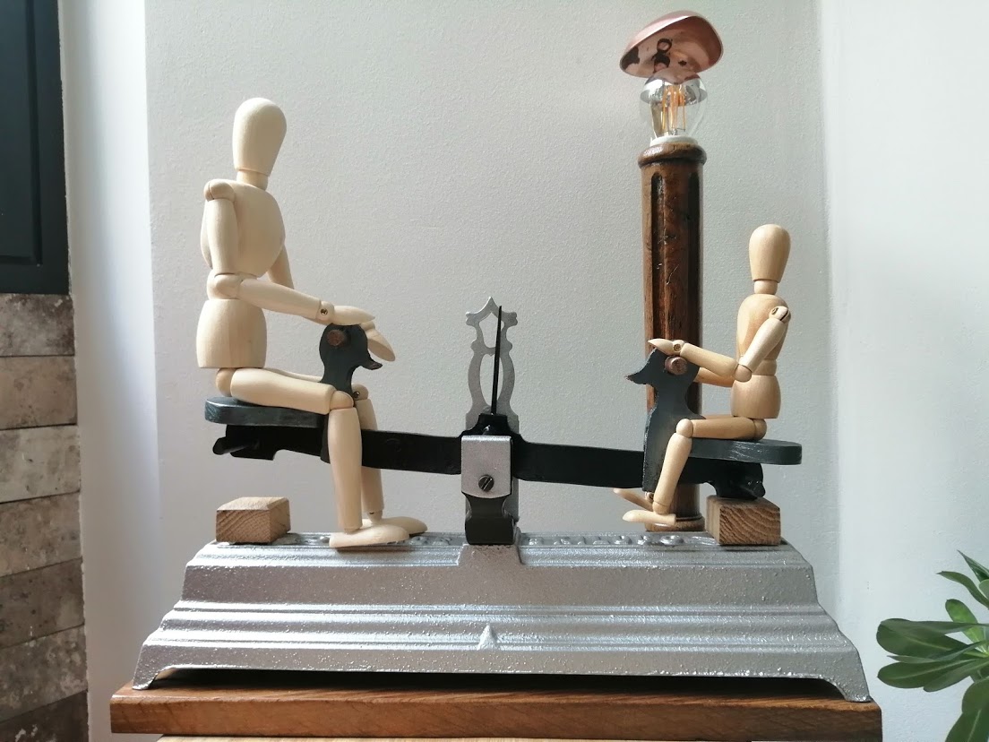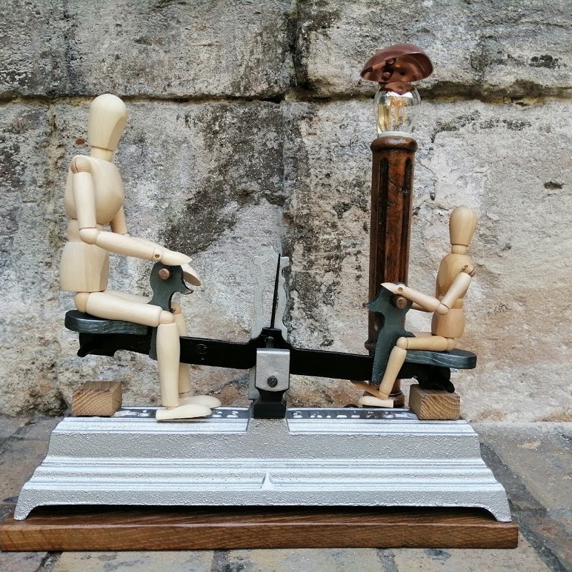 Nous avons eu envie de redonner un p’tit coup de pep’s à la « Balance à bascule ». Adieu la couleur rouge, le pot de fleur et bonjour le nouveau lampadaire.