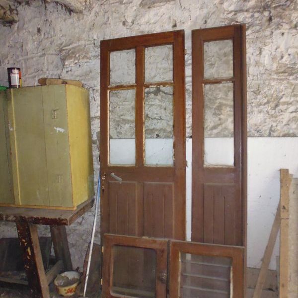 Un peu d’huile de coude, du plexi opaque pour remplacer les anciennes vitres et voilà une porte unique.
