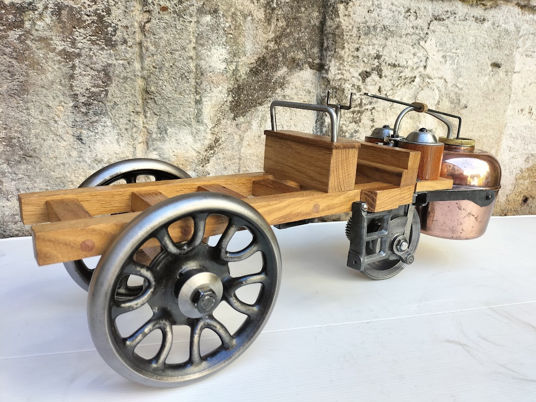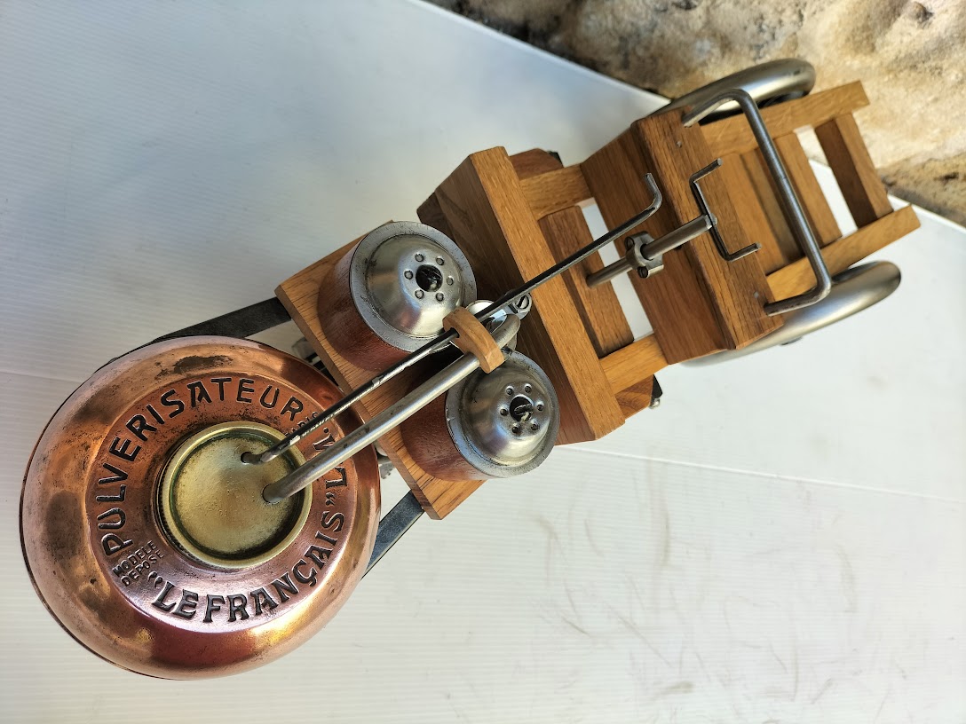 Lorsque nous avons vu cet ancien pulvérisateur en cuivre, il nous a, tout de suite, fait penser au Fardier de Cugnot, première «AUTO MOBILE» de l’histoire car 1er véhicule terrestre capable de se mouvoir seul sans l’utilisation de la force animale et dont l’inventeur était natif de Void-Vacon (Meuse).