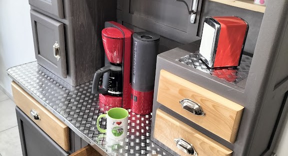 - Une petite étagère en bois pour y disposer les tasses