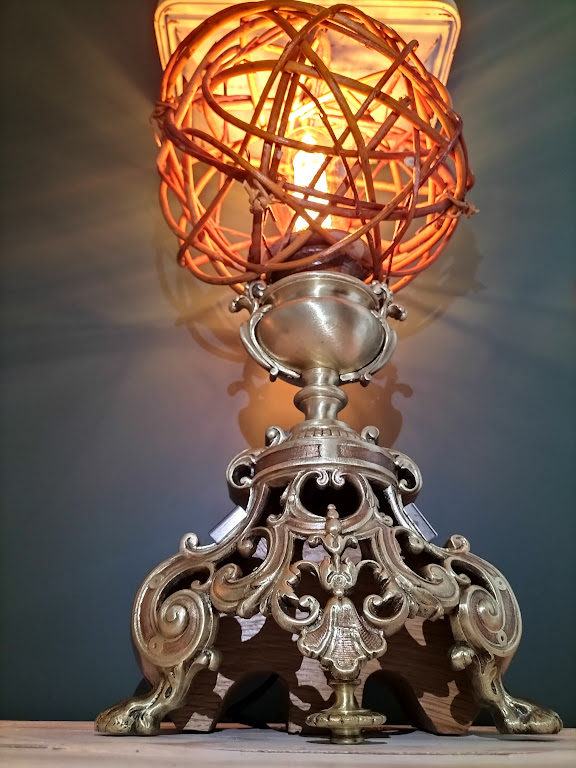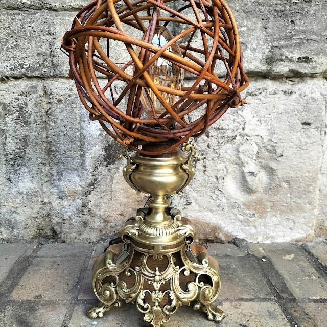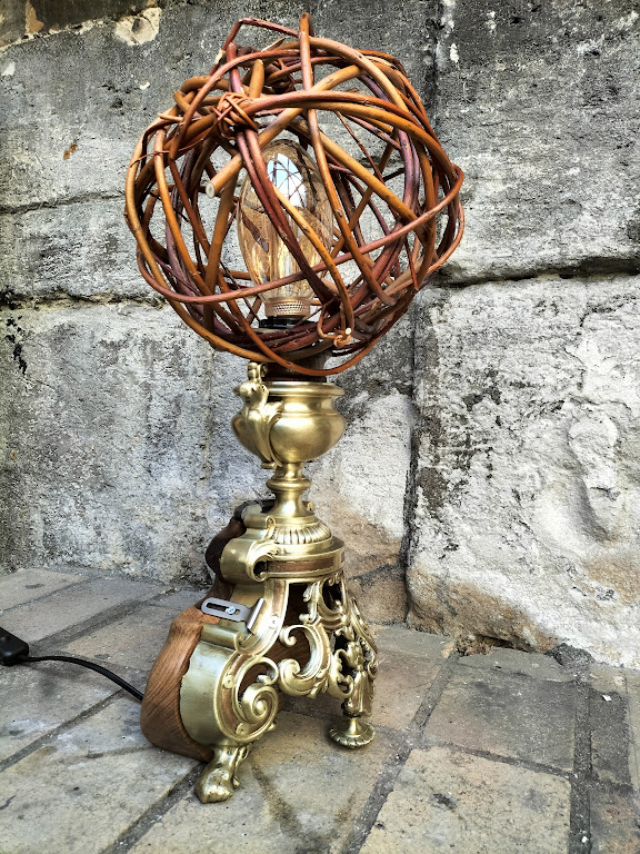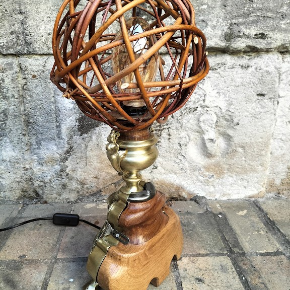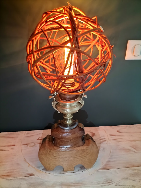 Cette création est un peu spéciale puisqu’il s’agit d’une création à 6 mains( eh oui, l’atelier a déjà 4 mains 🙂 ). C’est à partir de la bulle d’osier créée par Anne Beaujon de l’atelier V’Anne’rie que nous avons imaginé cette lampe.