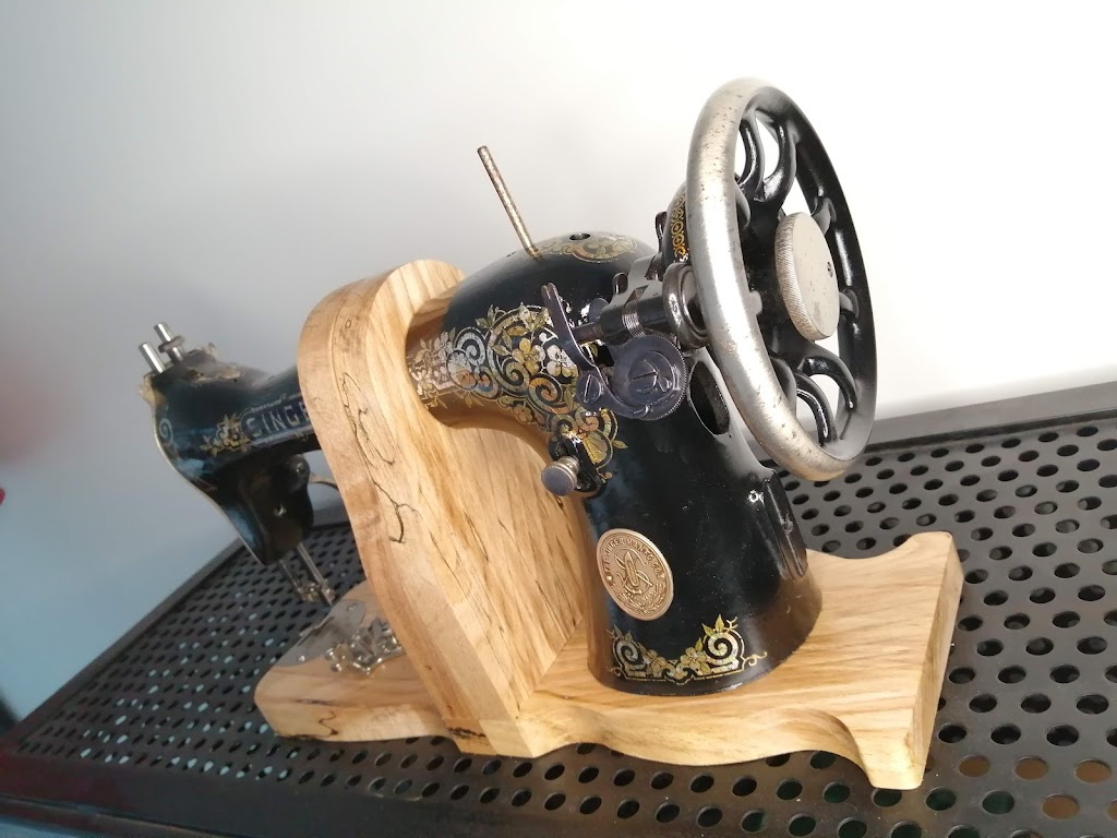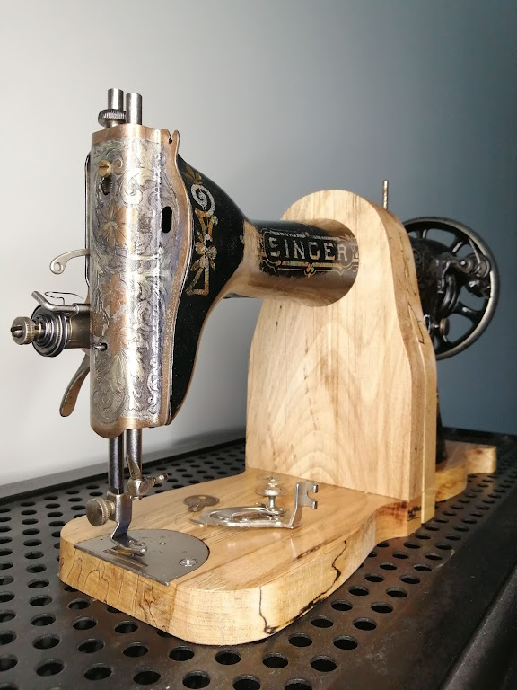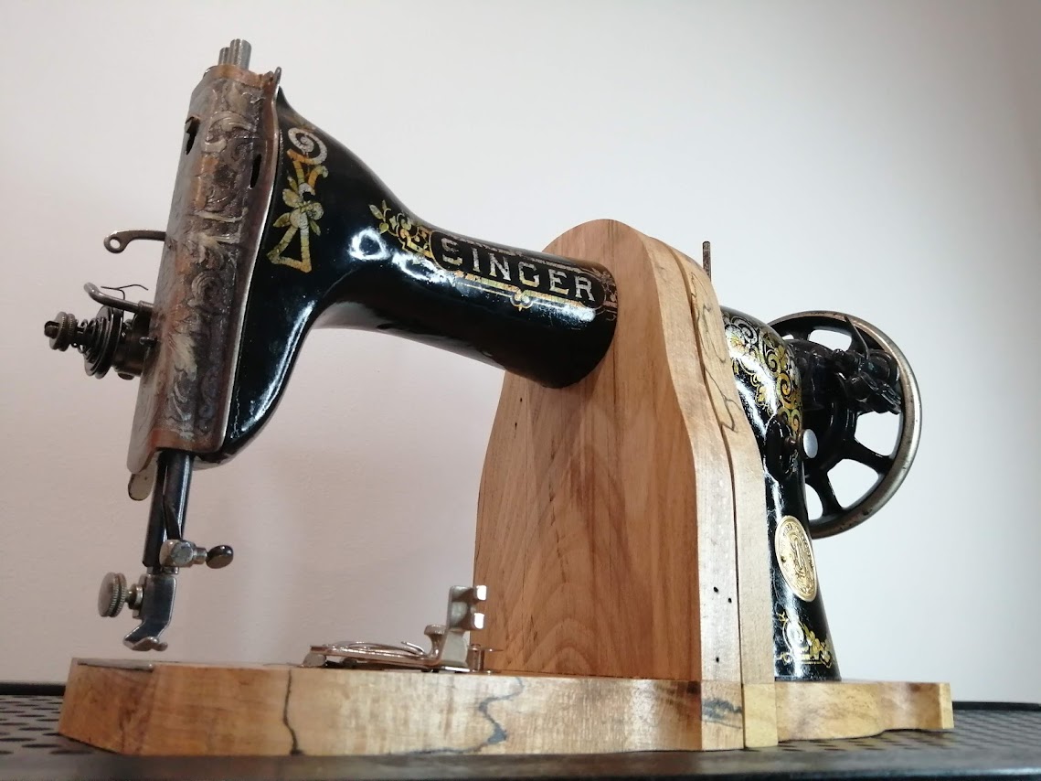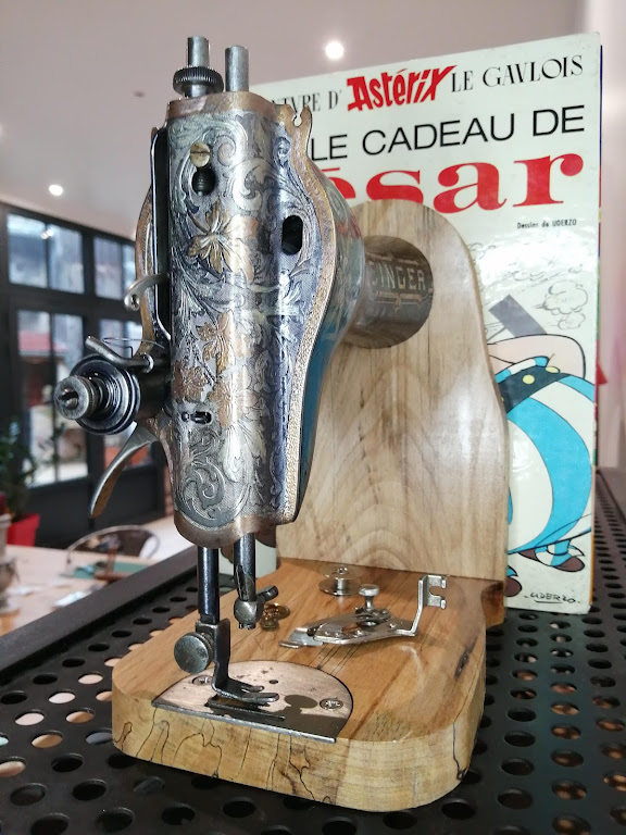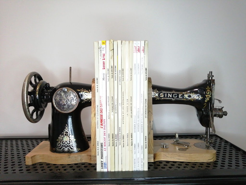 Nous n’avions encore pas transformé de machine à coudre en serre-livres…c’est fait.