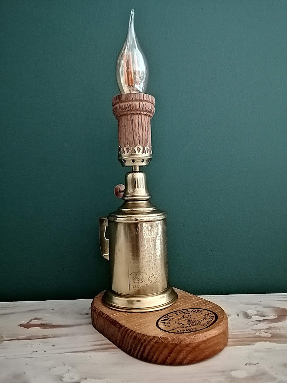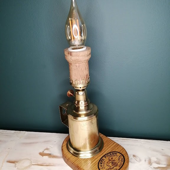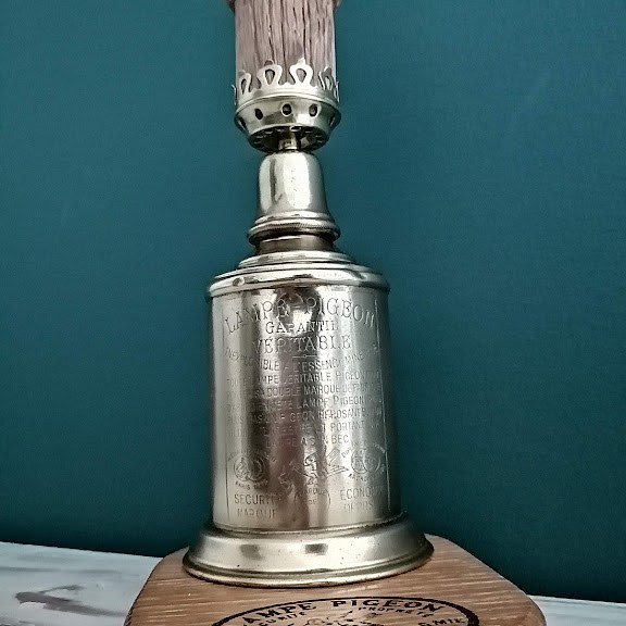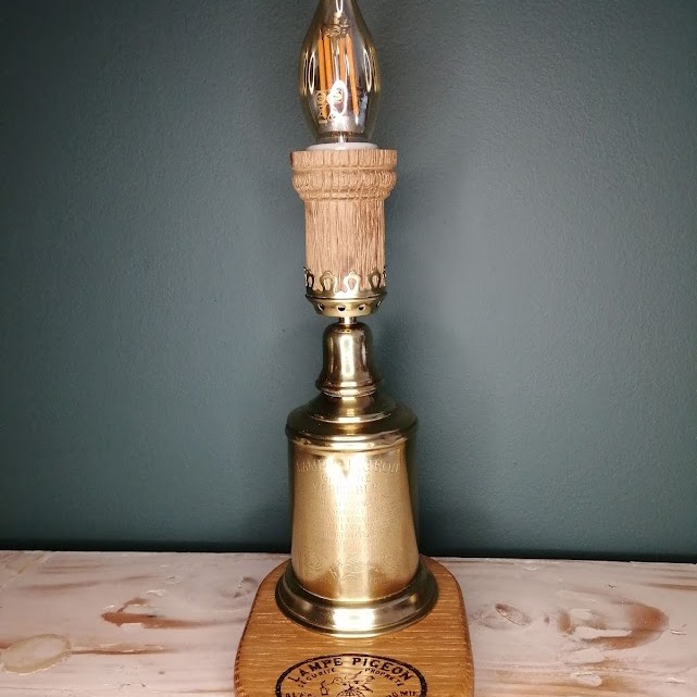 Nous avons eu un coup de coeur pour une petite lampe Pigeon en cuivre avec ses marques du temps.