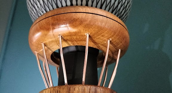 L’ampoule design vient coiffer l’ensemble pour donner l’illusion d’une montgolfière.