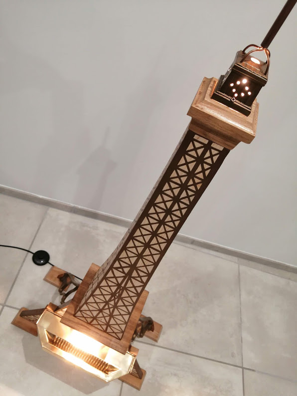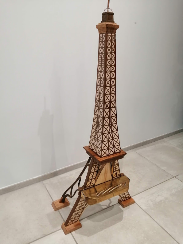 Il y a quelques temps, une charmante cliente nous avait confié un ancien cendrier de la Tour Eiffel afin de le mettre en valeur….Nous avions alors crée une lampe un peu décalée mais dans le thème sur laquelle ce cendrier avait pris place.