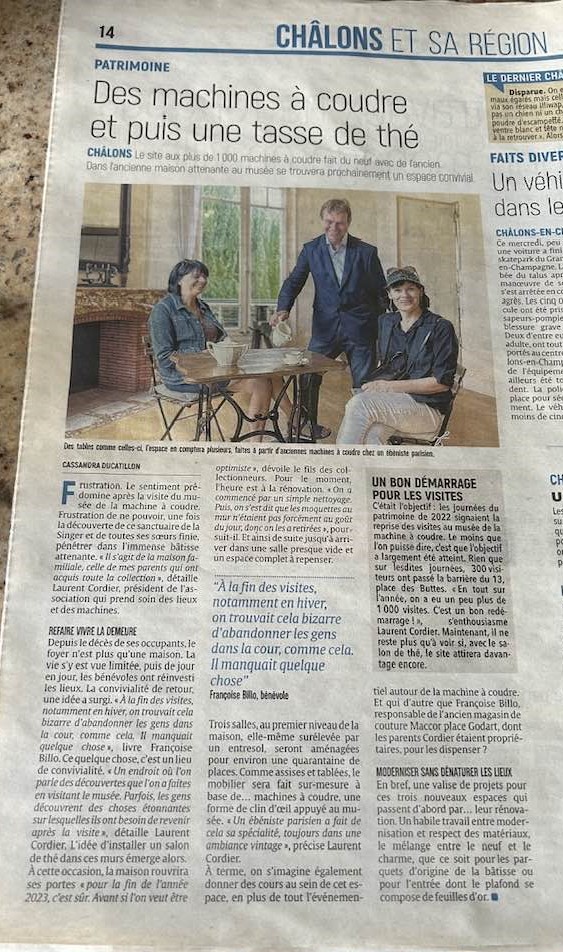 Nous avons convenu de visiter le musée, ce que nous avons fait début 2023 pour notre plus grand bonheur….ce musée est un petit bijou, plus de mille machines à coudre sont réparties dans une annexe de la maison familiale de Laurent Cordier.