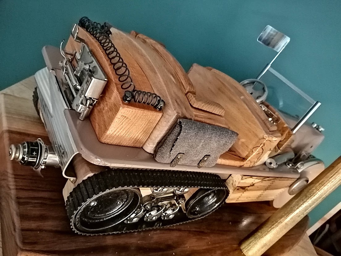 Inspirée de l’autochenille C4 P17 utilisée lors de la Croisière Jaune Citroën de 1931, ce nouveau véhicule de l’Atelier Barisien a été entièrement conçu avec des pièces métalliques de machine à coudre et du bois recyclé.