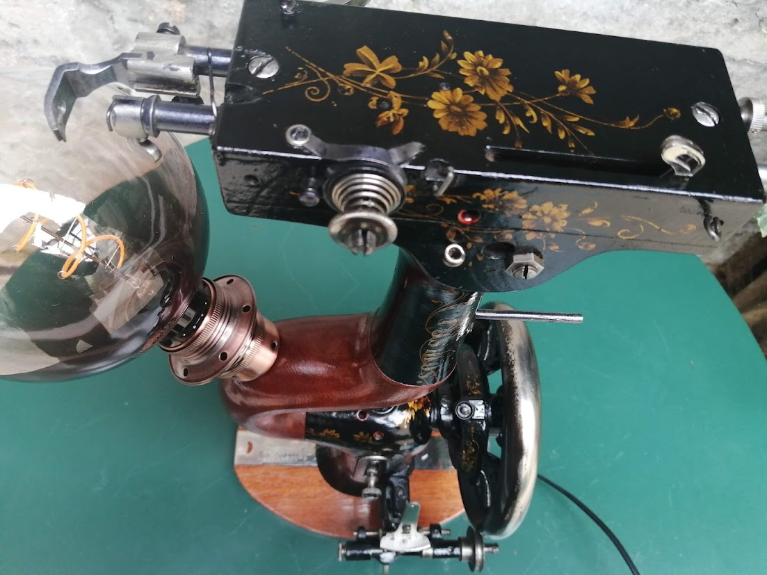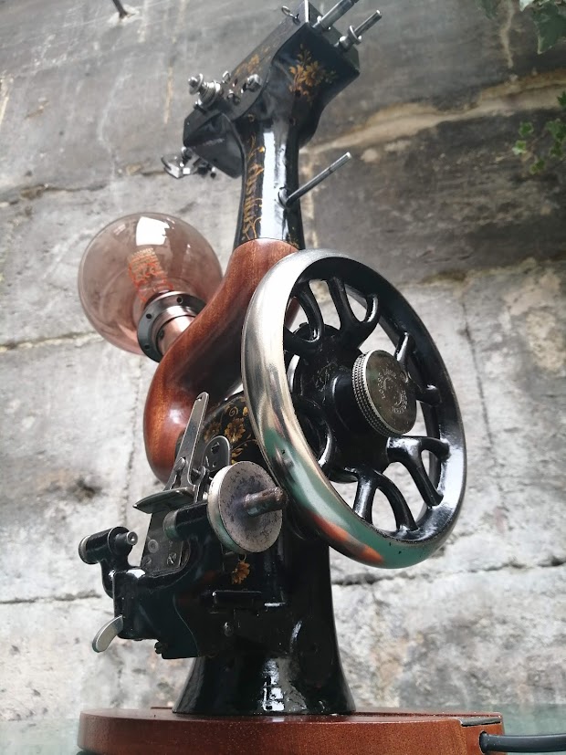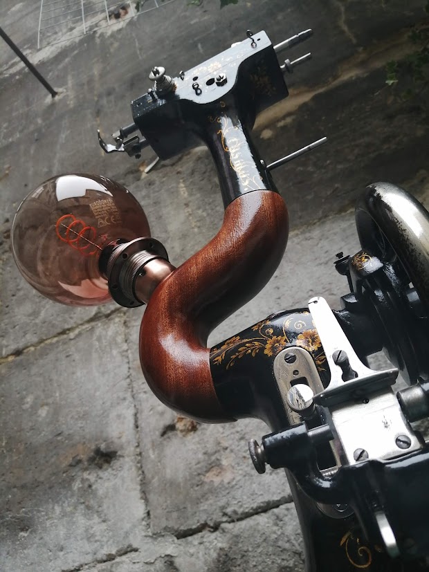 D’une ancienne machine à coudre démodée, la voici transformée en belle lampe contemporaine aux airs futuristes mais surtout éco-responsable.