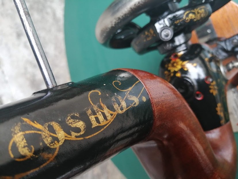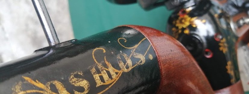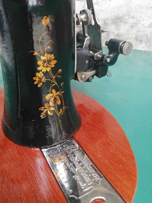 Cette machine à coudre nous a fait de l’oeil avec son format compact et ses petites fleurs dorées. Ni une ni deux, nous avons entrepris sa transformation.