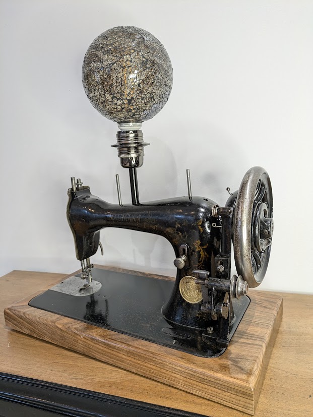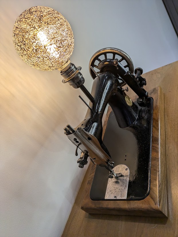 Des clients nous ont confié leur machine à coudre familiale pour une transformation en lampe. Jusque là rien de particulier si ce n’est que cette machine avait subi les affres d’un incendie et était fort abîmée.