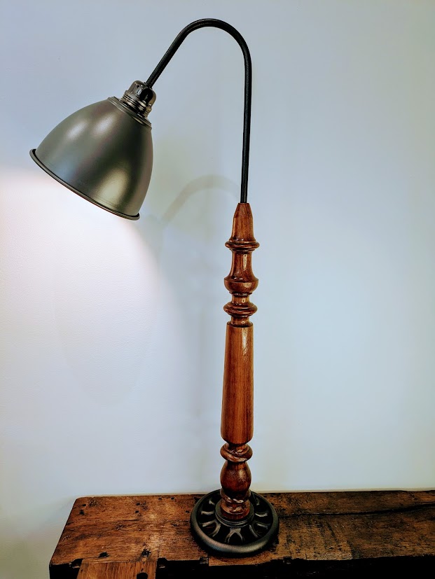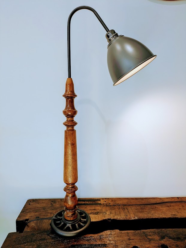 Voici une belle lampe alliant bois et métal à poser sur un bureau, une console ou dans votre salon.
