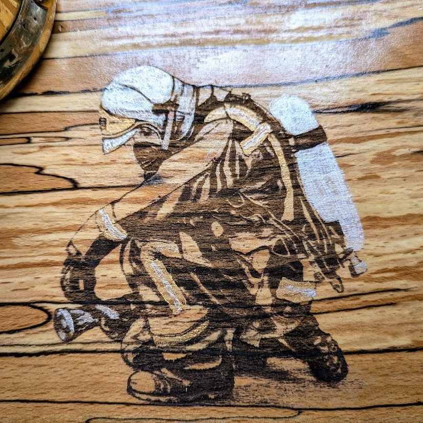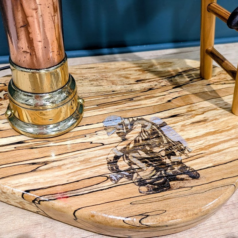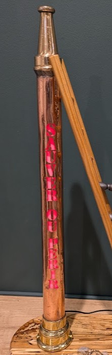 Petite nouveauté pour l’une de nos créations puisque nous avons travaillé avec le CRITT-TJFU de Bar le Duc pour réaliser une découpe au jet d’eau sur la lance en cuivre de pompier que nous souhaitions transformer.